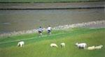Ihren Hund dürfen Sie an der kurzen Leine mit auf den Deich nehmen.